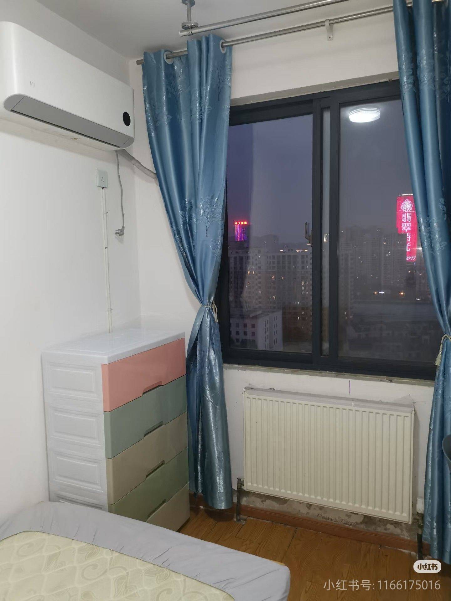 小区位于明珠广场附近,管理规范安全,生活交通便利。复式楼,顶层为标准层高,两梯两户,顶层拥有南北两个大露台。菜鸟驿站在紧邻的9幢101,楼下有小区的另一个大门,每天5:30~22:00开放,仅供行人出入,大门内外有车棚(配有充电桩)、共享车、监控。 房东直租,简约环保安静干净,随时可以入住。 房间位于楼下,朝南,面积约7平方米,配备一级能效小米空调、实木床、实木芯书桌、塑料椅子、木质衣柜、塑料五斗衣橱、固定晾衣架、独立洗衣机。 公共设施包括厨房、餐桌、男卫生间(楼上)、女卫生间(楼下)、公用洗衣机(用于洗窗帘等大件物品)、抽油烟机、电磁炉、微波炉、家用水基灭火器、WiFi、公用北露台。 半年起租,租期不足半年的,租金略微上涨(20~60);租期一年的,租金680。包物业费、宽带费,民用水电,押一付一。 注:另有一间次卧位于楼下,朝北,2025年11月23日到期腾空(760)