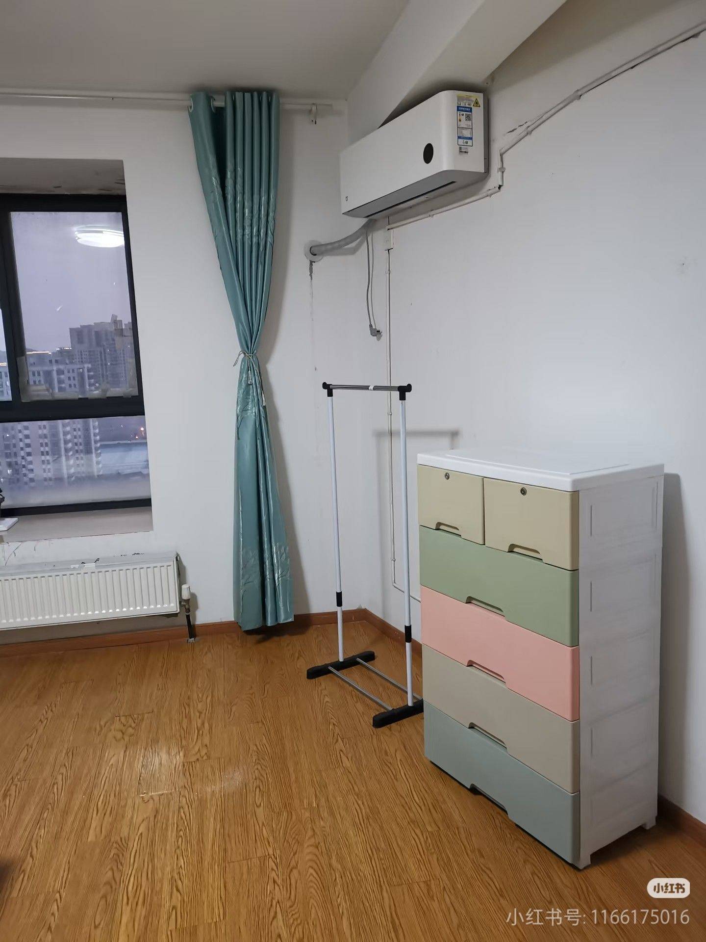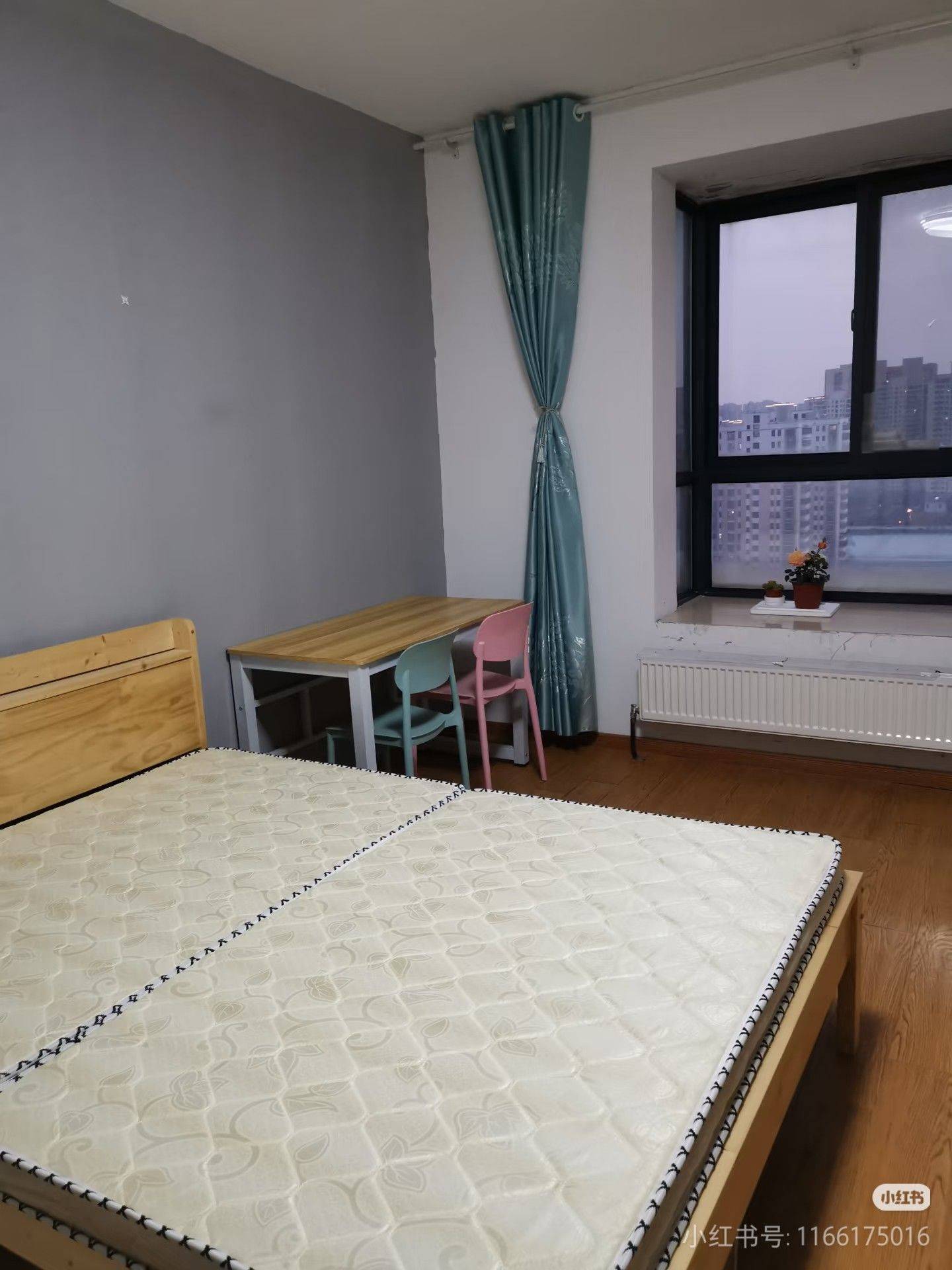 3、另有主卧独卫房(附图5~9)位于楼下,朝南,原始结构,面积约24.5平方米,配备一级能效小米空调、实木床、木质衣柜、塑料五斗衣橱、挂衣架、实木芯书桌、独立卫生间、独立洗衣机、飘窗。租期一年,月租1080元;租期半年,月租1120元。2026年4月28日腾空可入住。