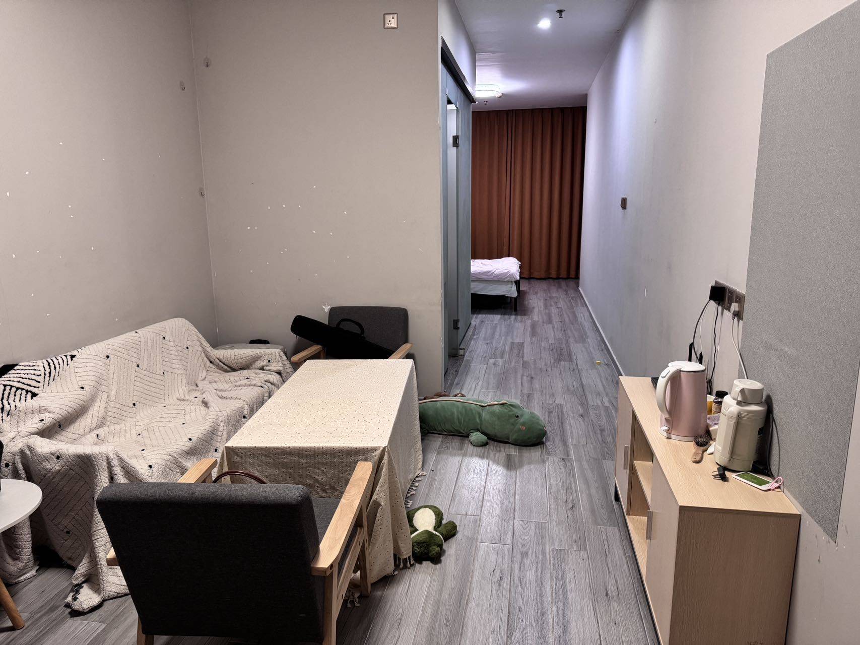 位置:东莞市寮步镇汽车城附近,公寓转租,户型为大单间,独立大阳台,空调、洗衣机、热水器、冰箱、智能门锁、沙发、衣柜、桌子等家具齐全。 房间有60平左右,押二付一,水4.91,电1.2,免费wifi,没有管理费,环境好,在附近上班走路十分钟左右,楼下和小区停车免费。还有9个月到期,无任何中介费用,有想法的可私聊随时看房。