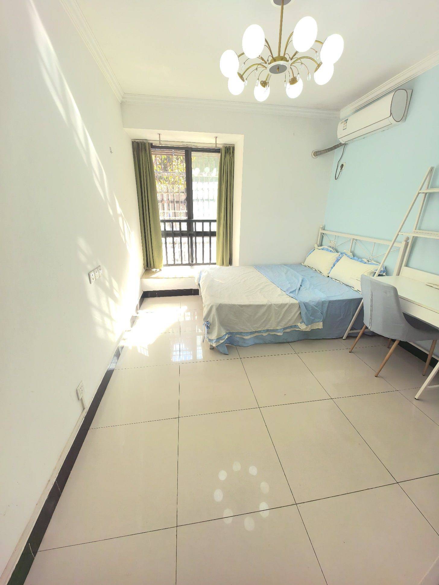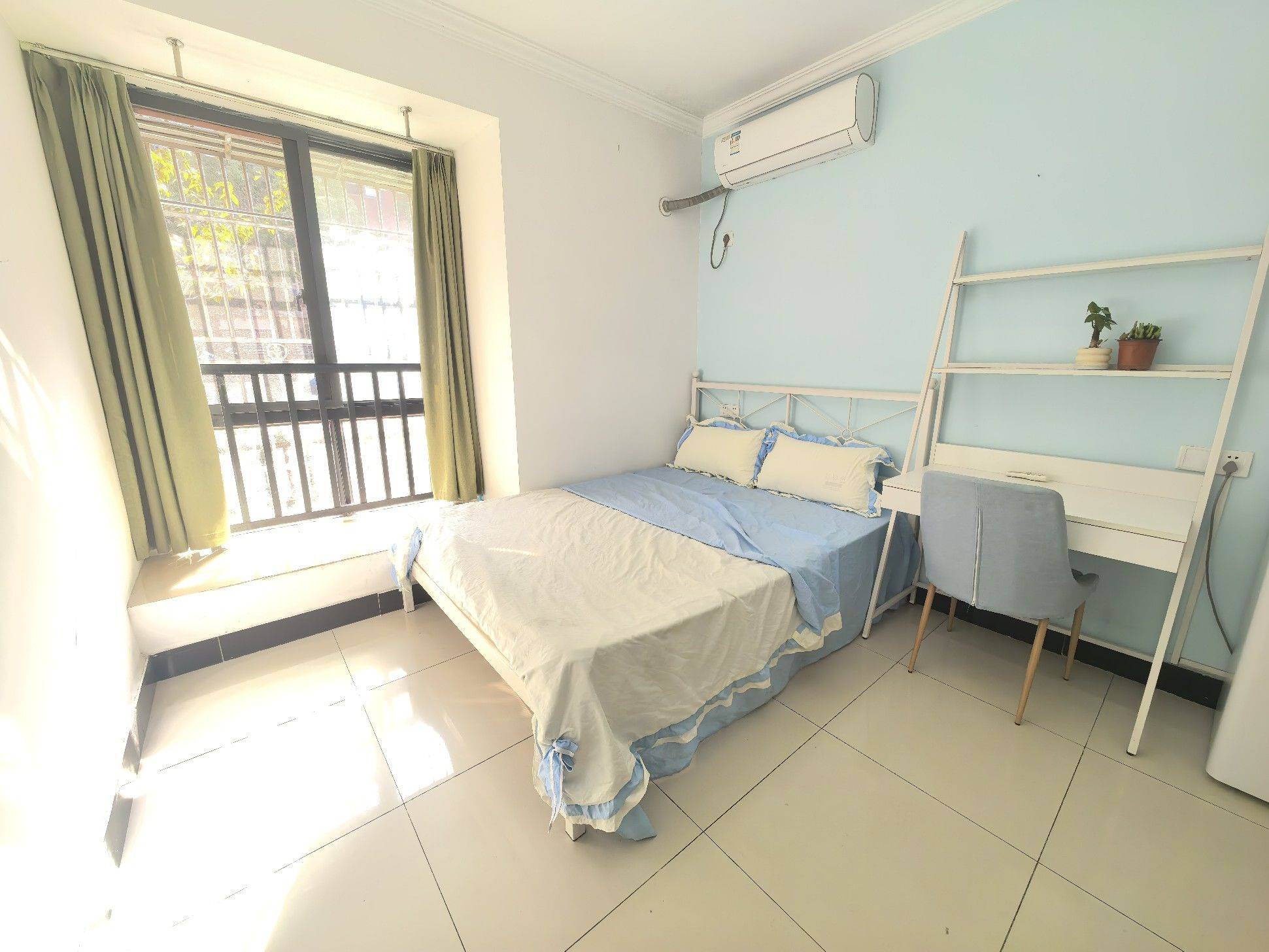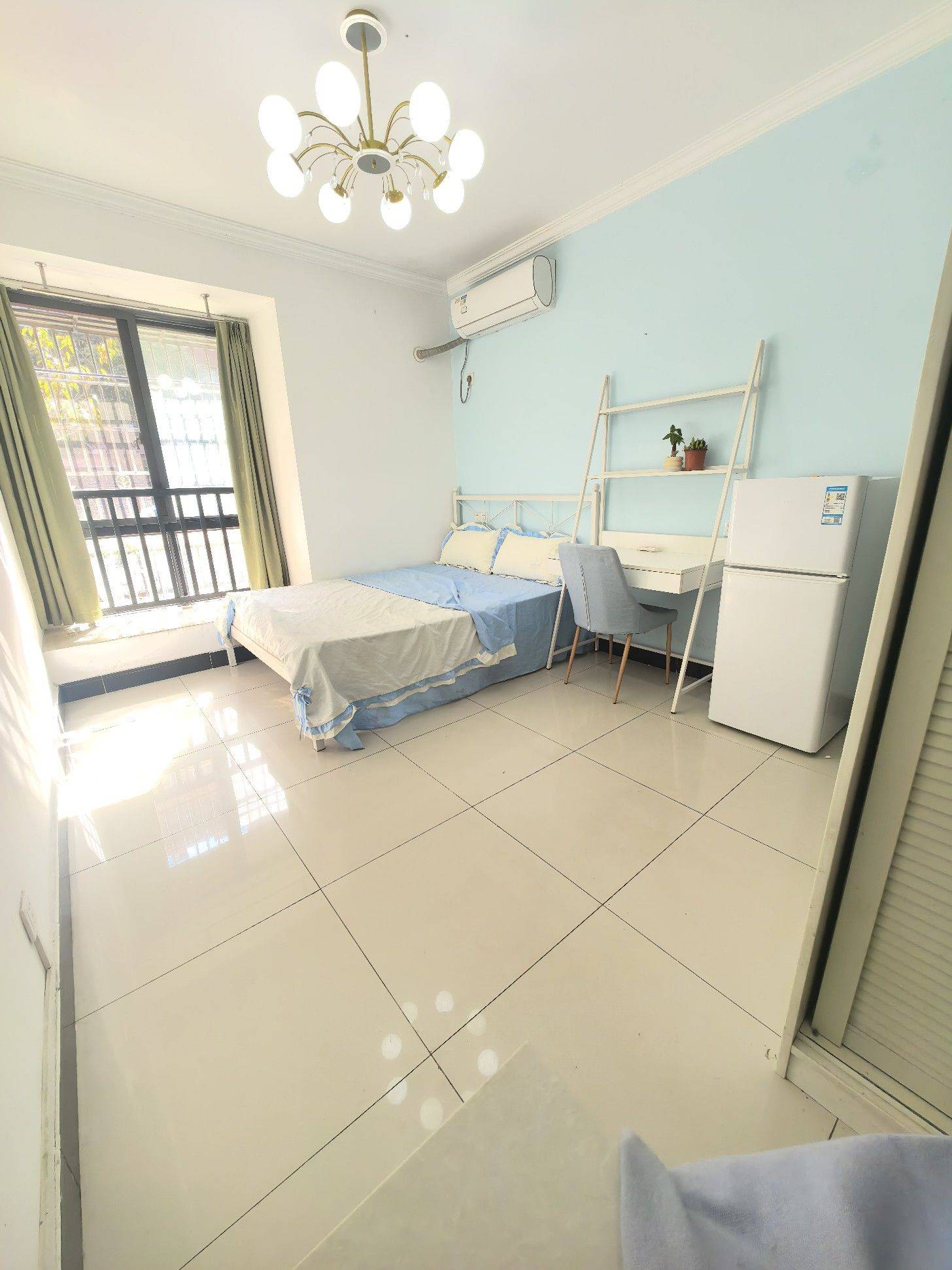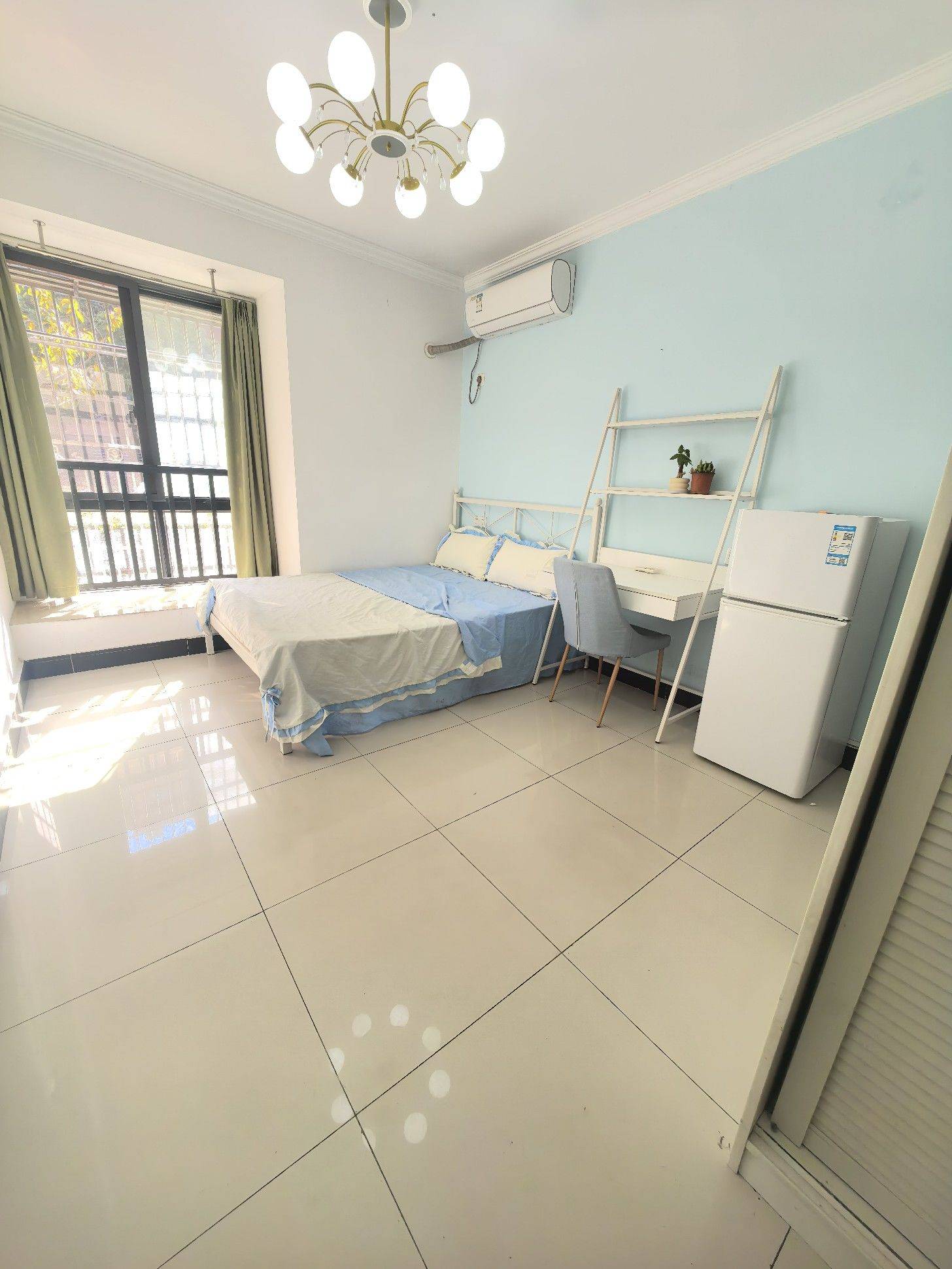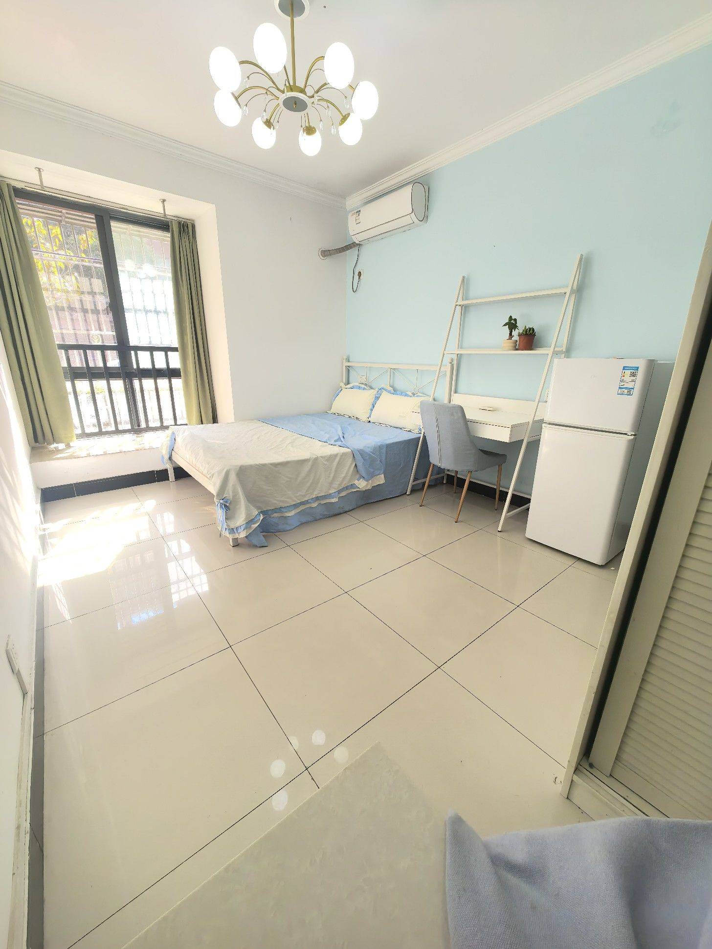 朝南,一室一厨一卫,阳光可以直接晒进卧室,房子干净整洁,照片是去年拍的,家具家电全配。