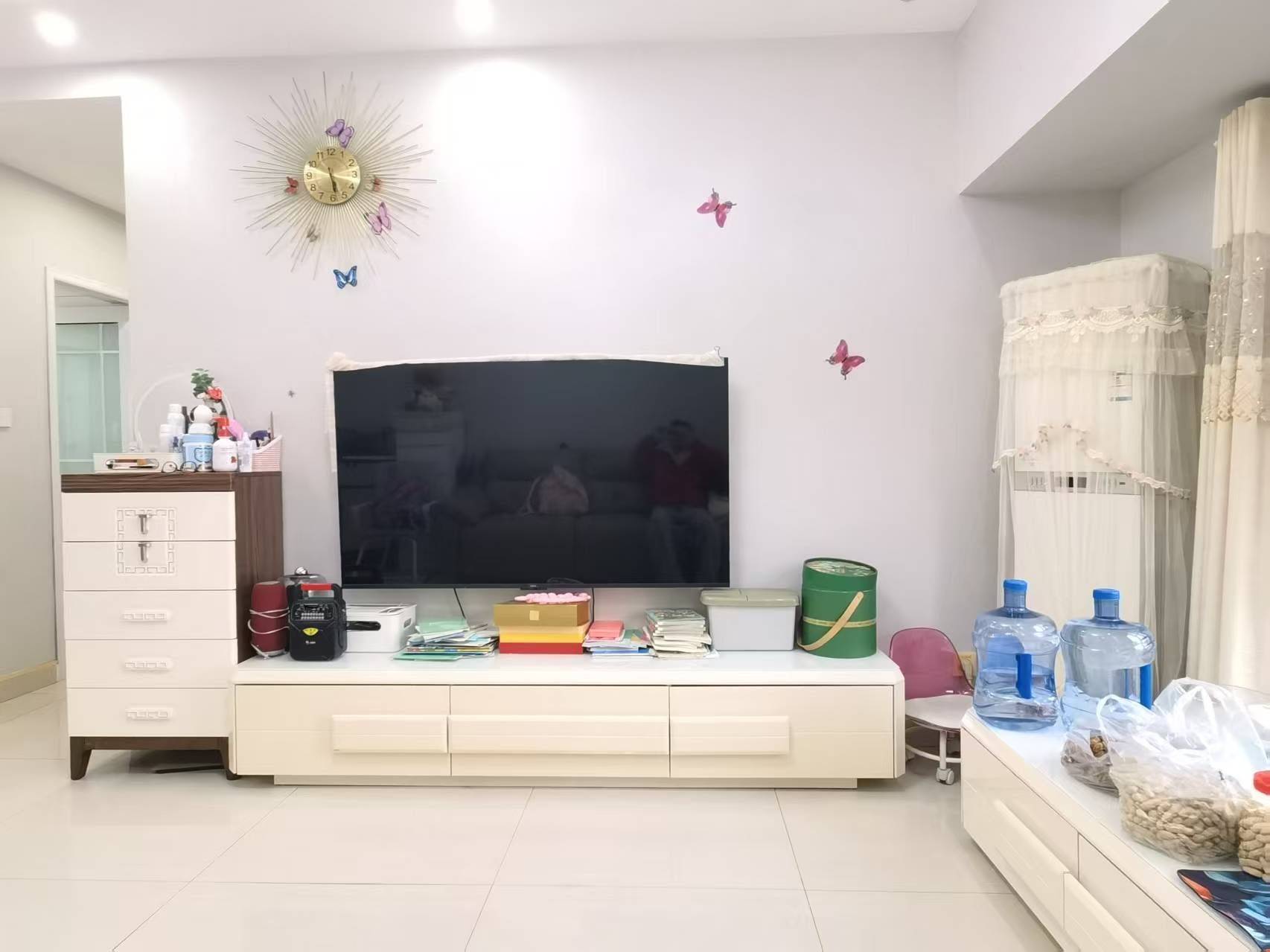 成华区万象城华润二十四城二期套三精装出租 注意⚠️:中介勿扰! 有意者可直接私我看房,个人房东直租! 房子位置位于成华区万年场华润二十四城2期,门口大门口有独立放鞋地方,精装修自住,第一次出租。带密码锁,智能马桶。才买的一万多的皮沙发,中间楼层,对中庭绿化很安静。租期最低一年,押一付三。不接受带宠物哦!