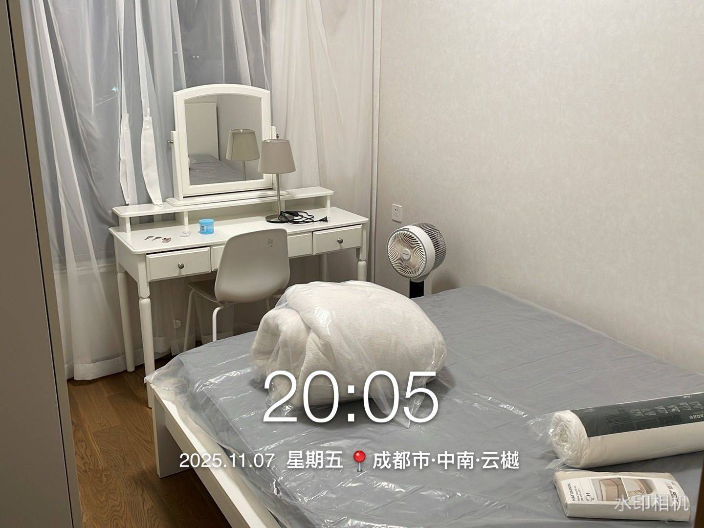 三室两厅两卫的房子.两次卧没人住.图中次卧出租.目前自己住在主卧. 民用房.非公寓.水电气AA. 全屋中央空调中央空调.净水系统.楼层中层.冬暖夏凉. 出门是19号线.距离在1200米上下.四号线有点远3.2公里上下. tip:为考虑生活环境不考虑情侣入驻. 照片真实上传.