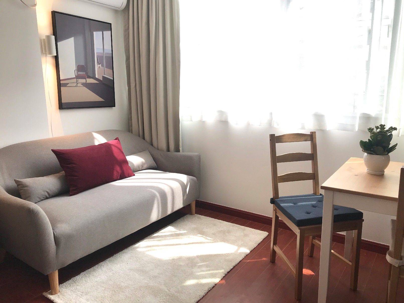 可以长租或短租。位置非常好,在长宁区江苏路核心地段,步行到地铁江苏路站大概8分钟。大一房户型朝南的步梯3楼,开窗见绿,非常安静。配置都很齐全,可以直接入住,欢迎来询和入住。