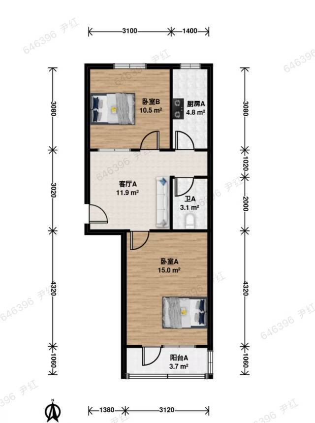 年后三月份找室友合租,我整租的两居室,南卧带阳台15平米3000,北卧10.5平米2500,可月付,租哪间你先挑,冰箱洗衣机都是新换的,可小刀