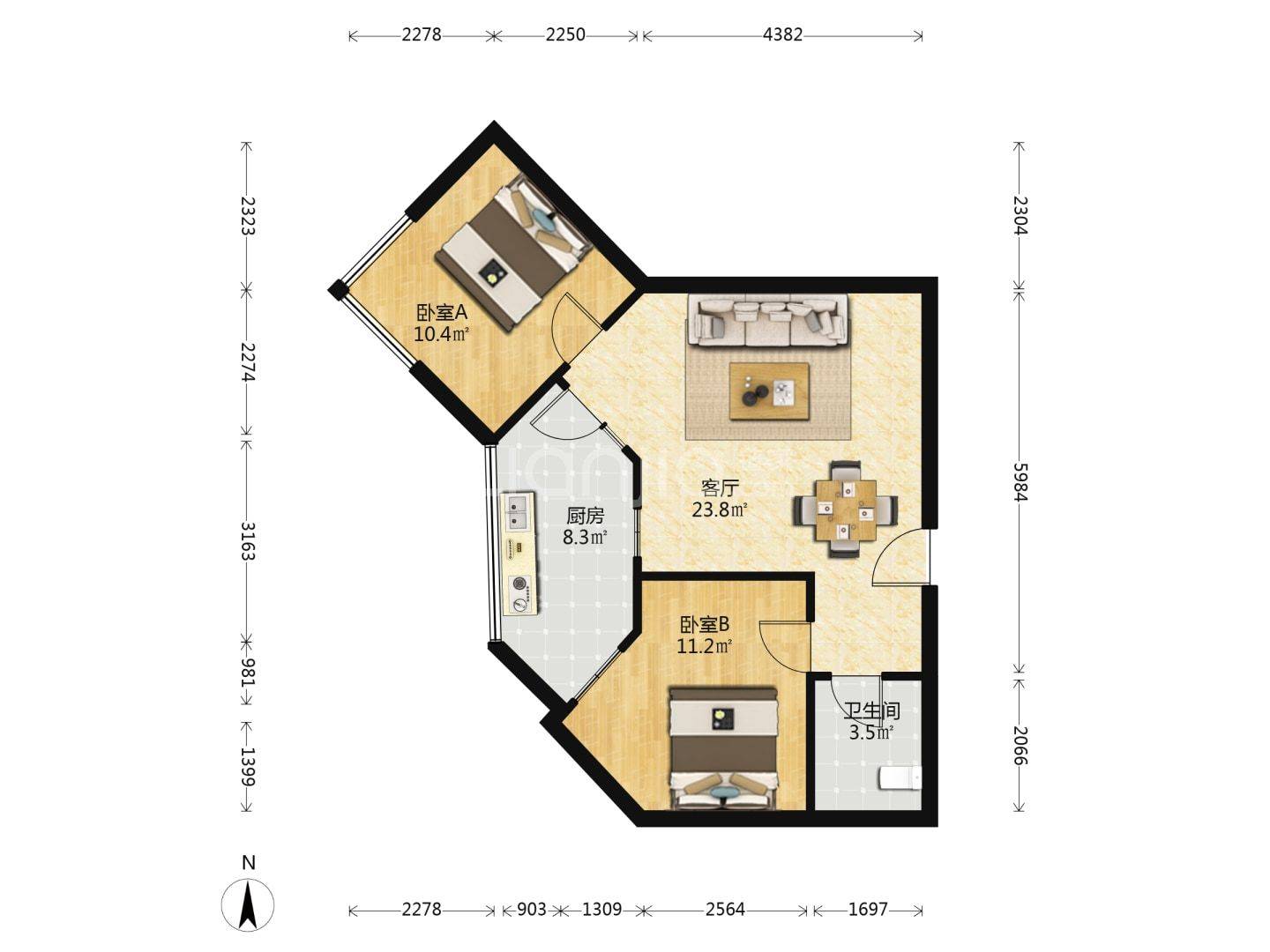 房间2卧室/1洗手间