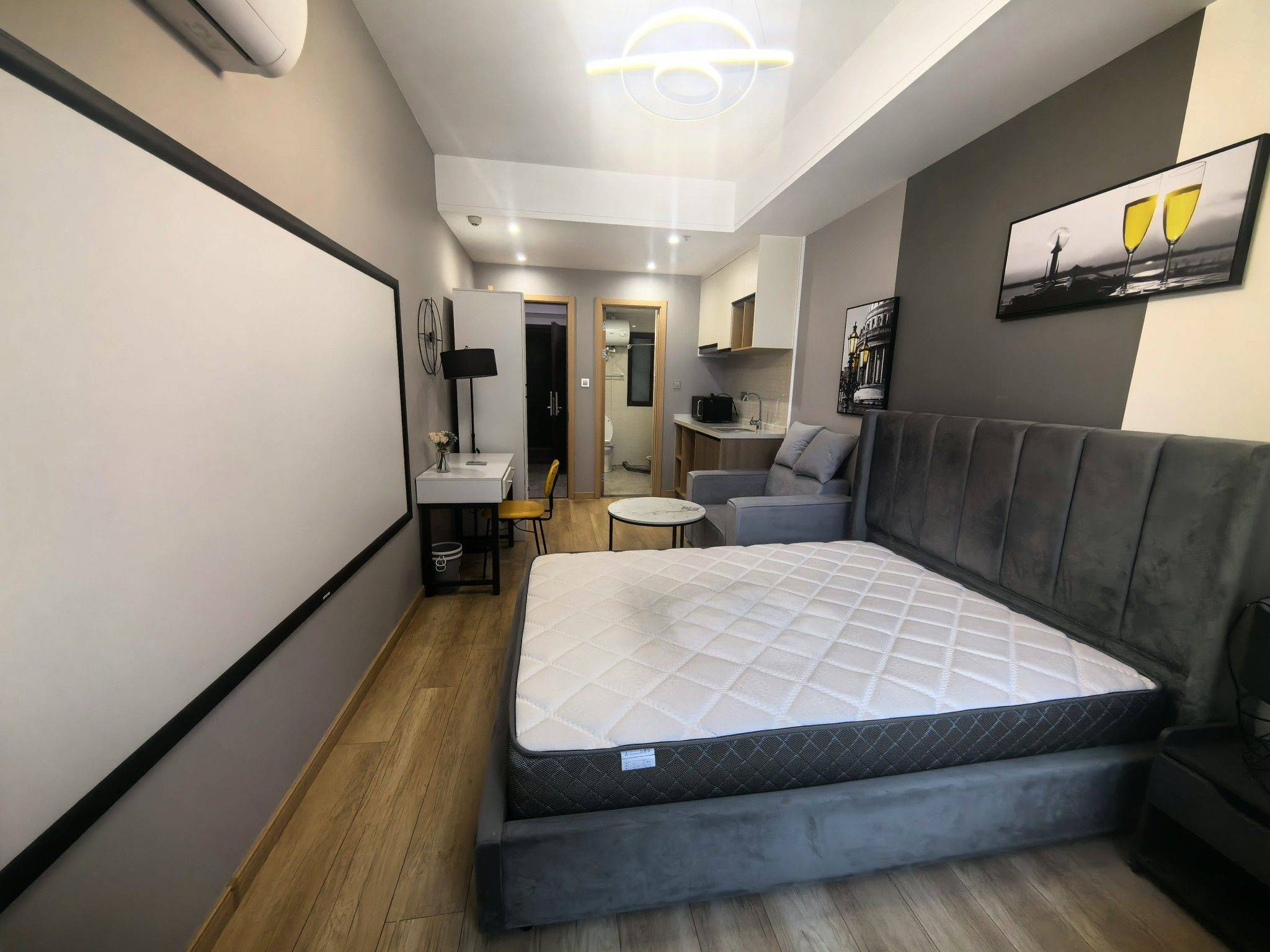 南京南站核心区双龙大道创新街交叉口的万科公寓,24小时安保管家式物业服务,民宿级联网电子门锁,带阳台视野开阔,靠近喜马拉雅商业区附近周边公共交通生活办公配套齐全,民宿级别精装和床品,家电家具齐备,有抽油烟机,冰箱衣柜全新,全自动洗衣机带烘干,冰箱容积大,高速宽带网络,拎包入住,若办理南京市应届生租房补贴可开租房发票。 房屋也可以注册公司,欢迎小微企业、私人工作室等团队入驻。南京南站旁,靠地铁和高铁,出行便利,楼下小区内有公共停车位和地下停车场。 交通:楼下出门即是公交车站(气象学院站),共经10条公交线路 地铁:步行11分钟到达双龙大道站、女生骑行15分钟到达南京南站地铁站。 公路交通:紧邻双龙大道、绕城高速(小绕城)交叉口,南京各行政商务中心所在地均在车程10-30分钟之内。
