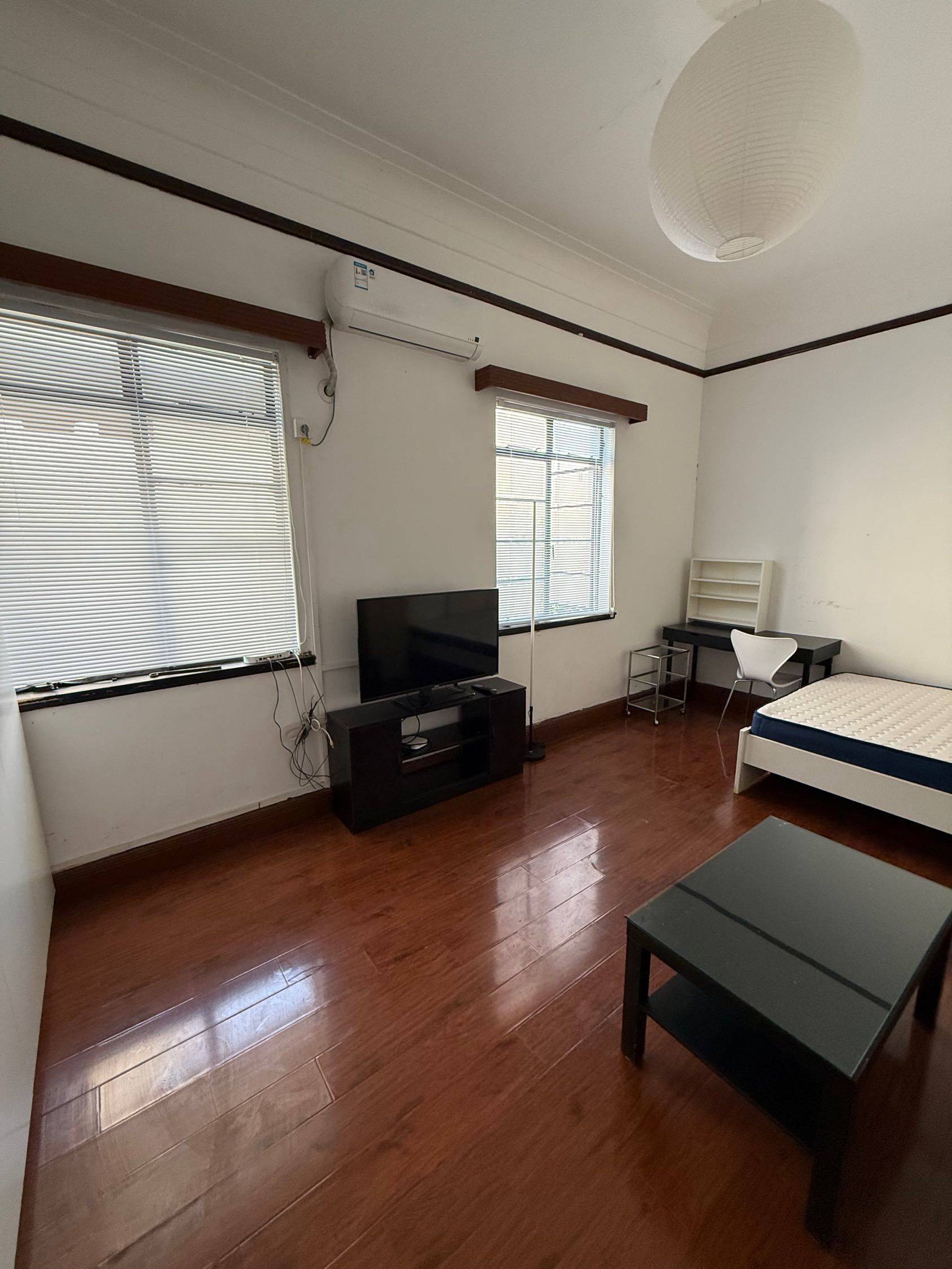 长乐路新式里弄一室出租。 宇宙中心地段,巨富长安福路静安寺愚园路近在咫尺,靠近常熟路&静安寺两个地铁站,7号线1号线2号线14号线。 二楼,标准一室,储物空间充足。采光良好,1台冷暖风空调,洗烘一体机。卫生间带窗,带排风浴霸。 小区环境好,楼道宽敞明亮,大房东直租。 付三押一,送宽带。 1b apartment for rent, 2nd floor in a beautiful mansion on Changle Road. Perfect location, 5-min walk to core area of Shanghai like An’fu Road, Jing'an Temple, and Yuyuan Road etc. Near Changshu Road & Jing'an Temple subway stations, accessible by Lines 7, 1, 2, and 14. Standard one bedroom, and one bathroom, with ample storage space. good lighting, one air conditioners with heating and cooling, washer-dryer combo. The bathroom has a window and is equipped with an exhaust fan and a heating lamp. Nice corridor, friendly neighbors, direct lease from the landlord. Three months payment plus one month deposit, free broadband included. PM for more details. Cheers!