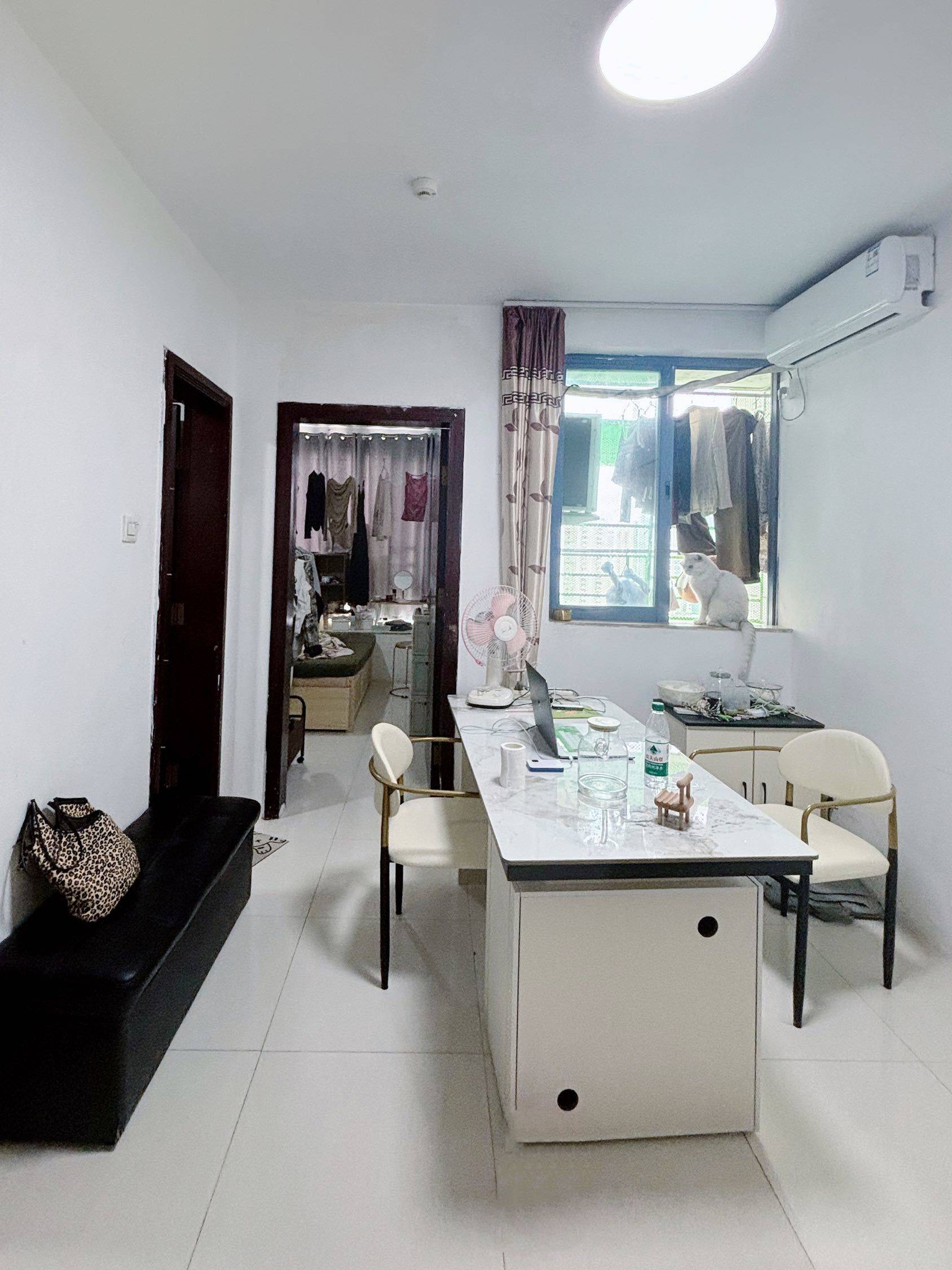 两室一厅一厨一卫,4k房租➕物业费173,民水民电,电梯房,可开通燃气,另 需要购买我的家具,共计5k5有详细清单(可协商),能接受的私 三月搬离。 - 🚇【地铁边上】下楼就是华强北地铁口B出口 5m,可通往2号线/7号线, 3号线和1号线也很近,步行五分钟左右即到。 - 📍旁边即是华强北市场,赛格广场、赛格电子市场和华强电子世界等等市场在这边上,这边工作上班的非常方便,很节省通勤时间,基本都5分钟左右或以内就能走到 - 🧭东南朝向,客厅装有防盗窗和防盗铁门,夏天可以直接打开门窗对流通风,很凉快且省空调费。 👗客厅防盗窗可以晾衣服,两个房间带飘窗也可以晾衣服。 - 🛏️2个房间/客厅共装有3台空调,两个房间的衣柜1.5m,主卧床1.5m*2m,次卧上下床1.2*1.9m。家具电器一应俱全。 - (可搜东方时代广场/茂业天地) 地下车库就可以直通地铁站和商场里面,周边都是商场和美食,很繁华