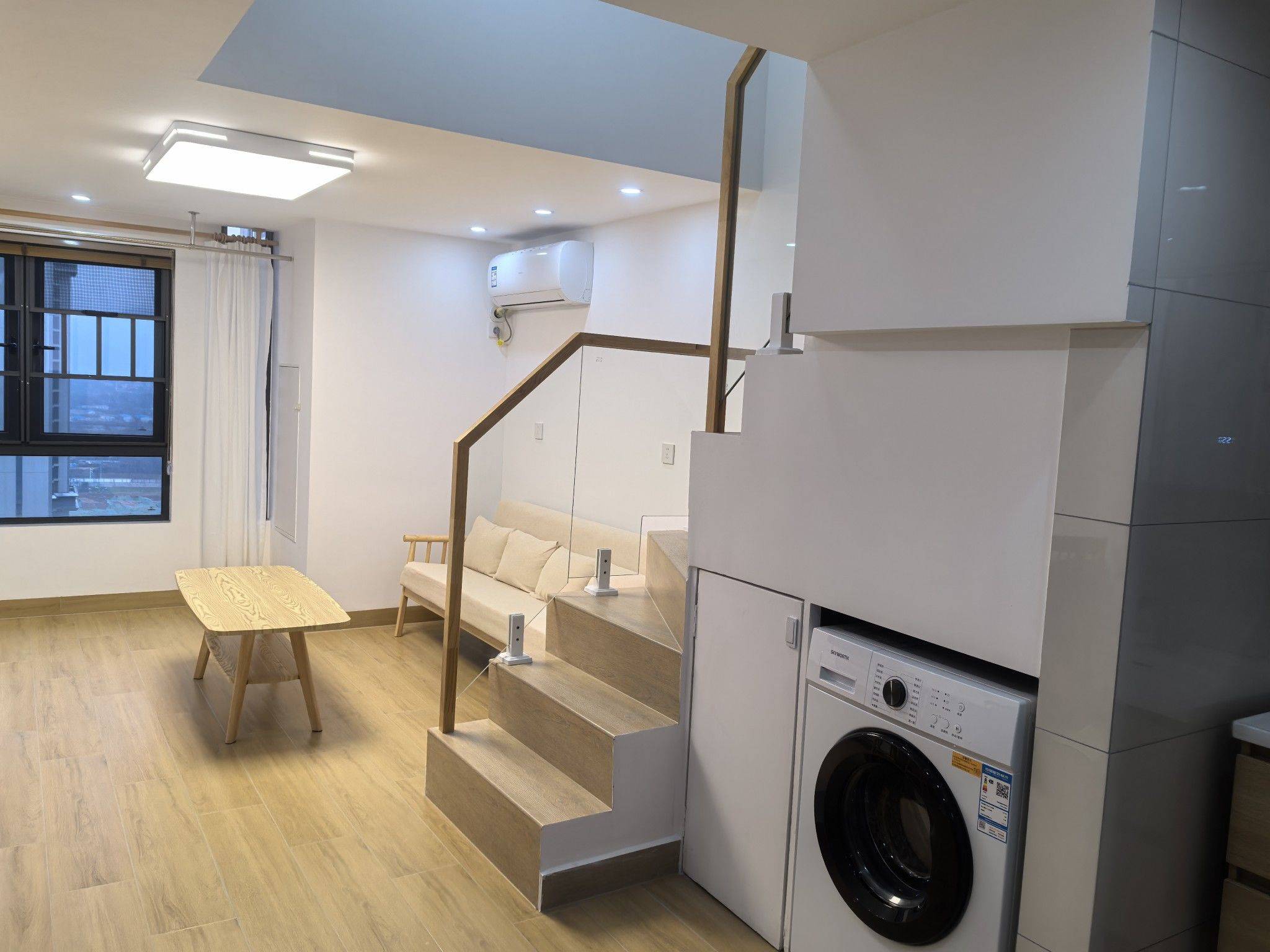 房东直租(没有中介费),随时可以入住,长沙岳麓区北辰时光里精装loft两房公寓,家具家电齐全,共三台空调,二层两个房间完全独立,有门有窗,拎包入住。 交通方便,地铁福元路大桥西站 1.3公里,附近麓山国际二小,长郡双语中学。 房租2000包物业,首次出租,希望租客爱干净,稳定,起租一年,押一付三。随时联系看房。