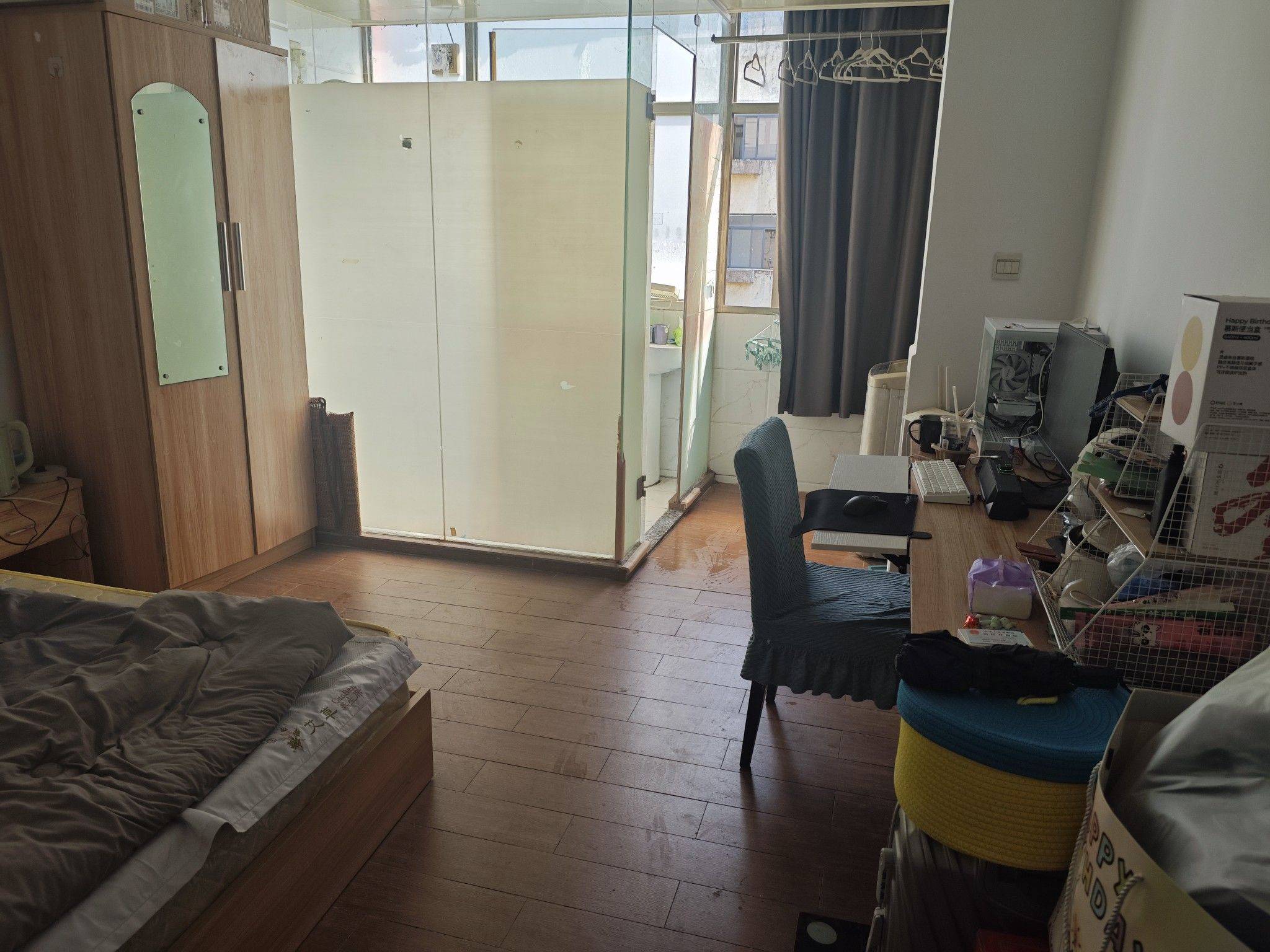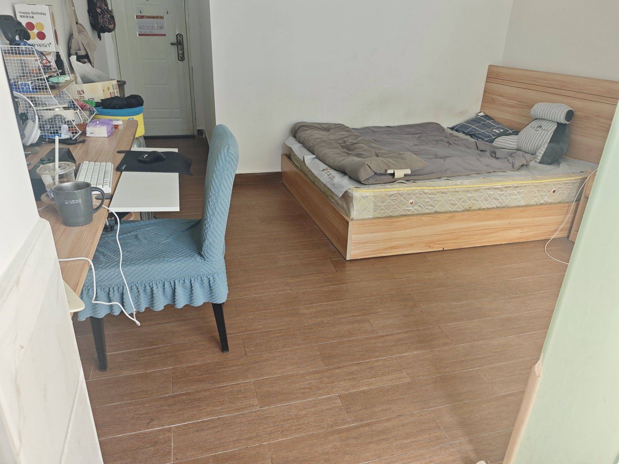费用: 房租2220(原本统一价2600,砍完后谈下来的价格是2320,剩下每剩1个月补100,相当于每个月只需要2220),管理费120(公寓型小区,有保安、电梯和保洁),网费60,全部费用总共2500/月,押两个月租金+300水电押金共4940,民水民电, 信息: 小区公寓大单间,采光很好,十分安静。空间适中,配有保安、保洁、电梯、阳台和物业管理人员,公寓楼下有低价停车位300/月,下楼就是公交站(宝深路站),距离地铁站(高新北站)500米,100米内有大型超市、菜鸟驿站和小吃街,200米外有松坪山公园,门口就是科北文体中心,可运动健身