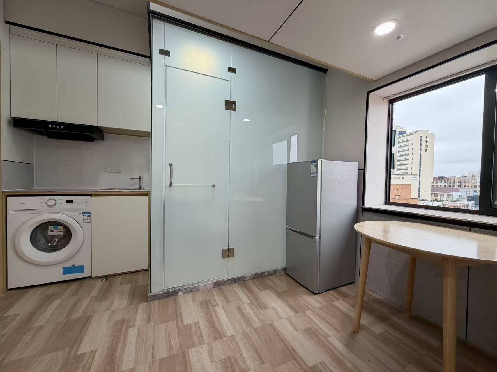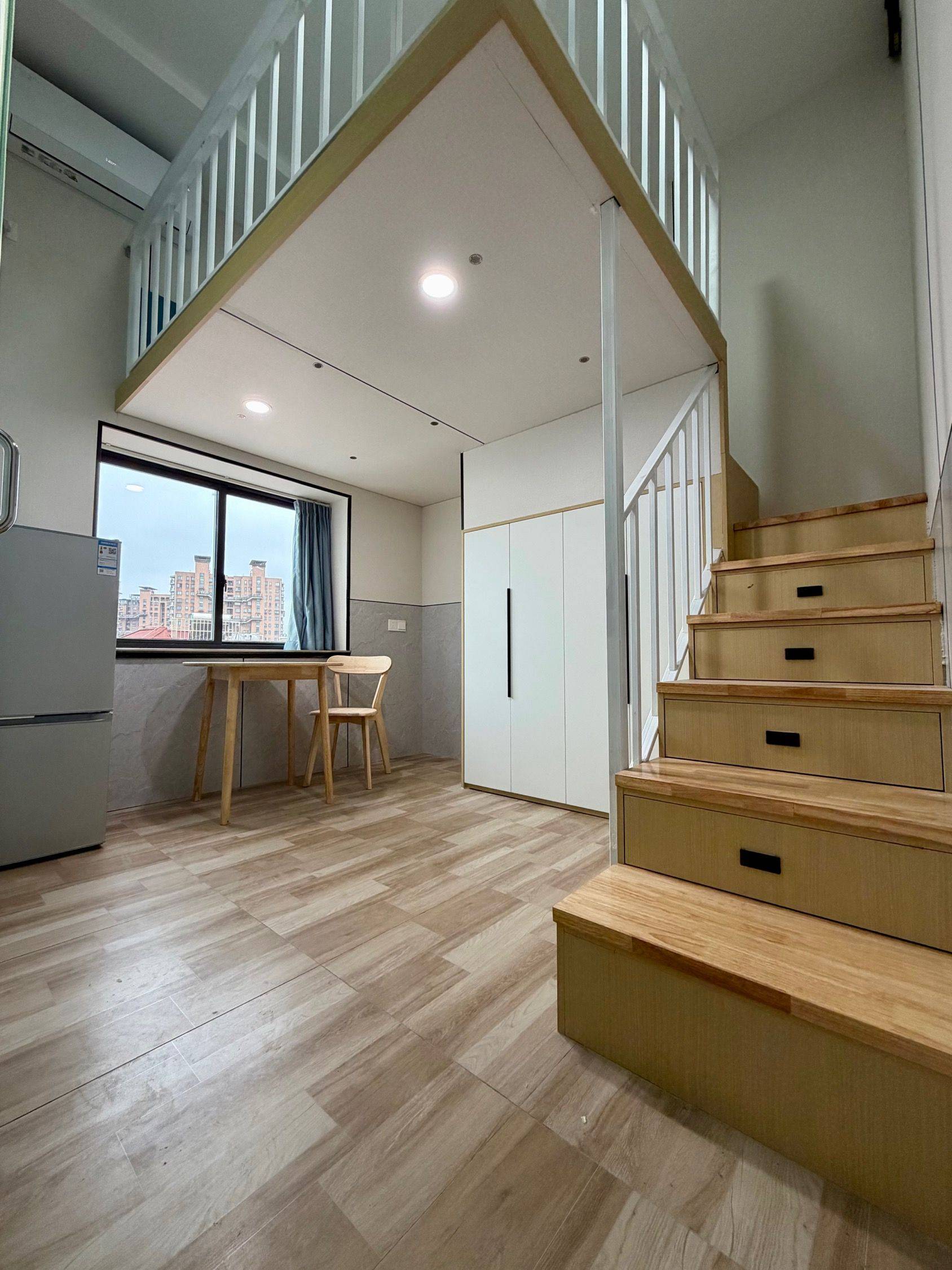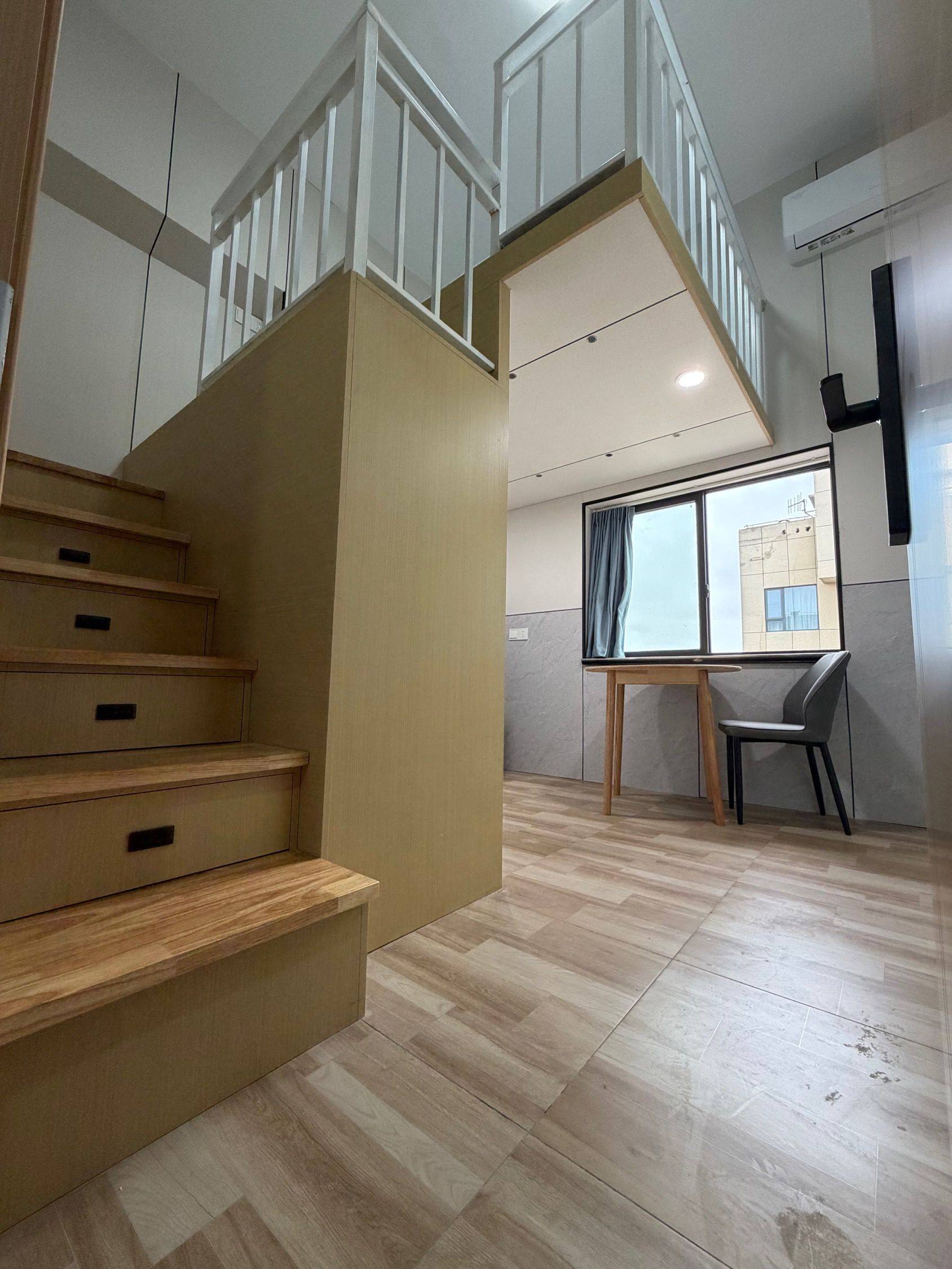 鸿博公寓Loft,新装修,18平,精装拎包入住!周浦镇康沈路1650号,地理位置超好,楼下就是小上海步行街,车站后面就是周浦万达,地铁18号线3分钟,交通很方便~ 适合家庭入住,最多4人,可换大床,桌椅也能换床。公寓配空调、洗衣机、冰箱、橱柜,能做饭,橱柜收纳空间大,每个房间独立宽带,24小时游戏随便玩! 空间布局合理,睡眠区和生活区分开,大窗户采光好。房东直租,无中介费! 有兴趣私聊,喜欢直接拍,细节随时问我~
