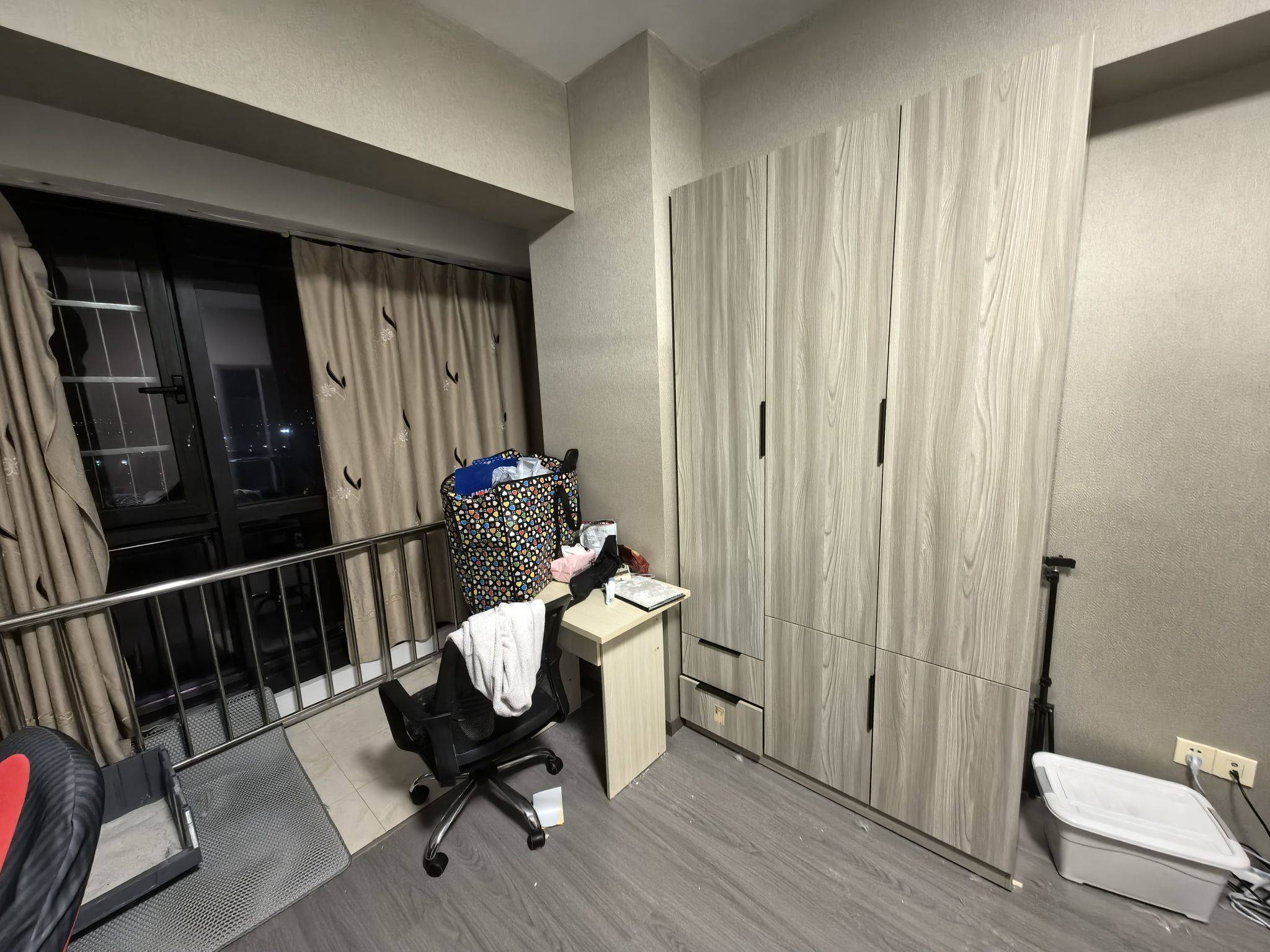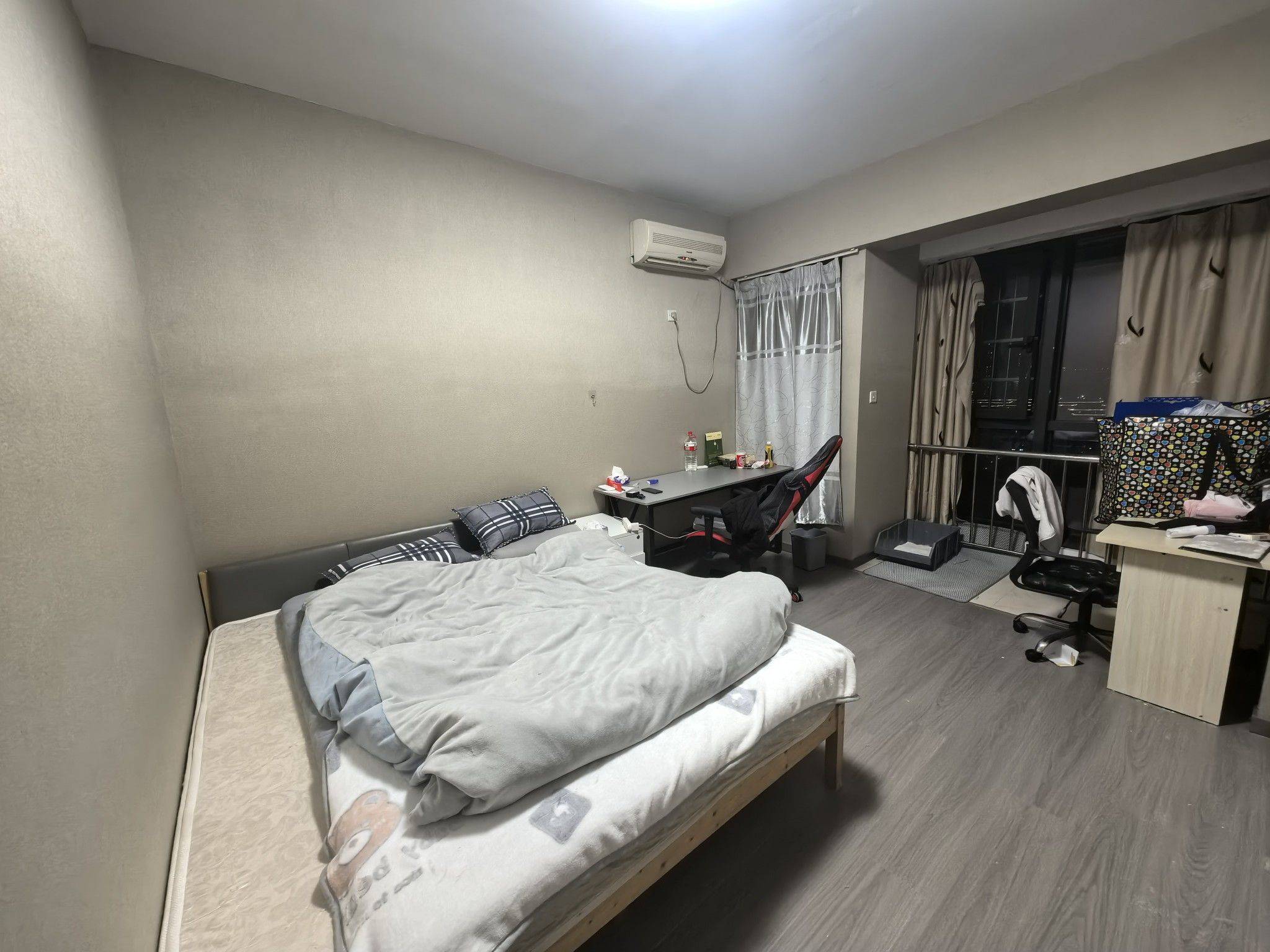 入户左边这一间 空间大 谈好我立马搬走 转租 1200一个月 个人原因住不了了 桌子留着其他都会清掉有空调有热水 大衣柜