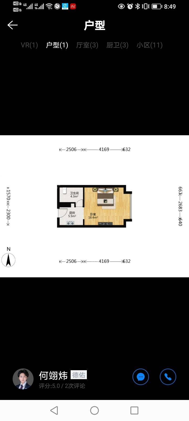 Rent : 2300RMB/M