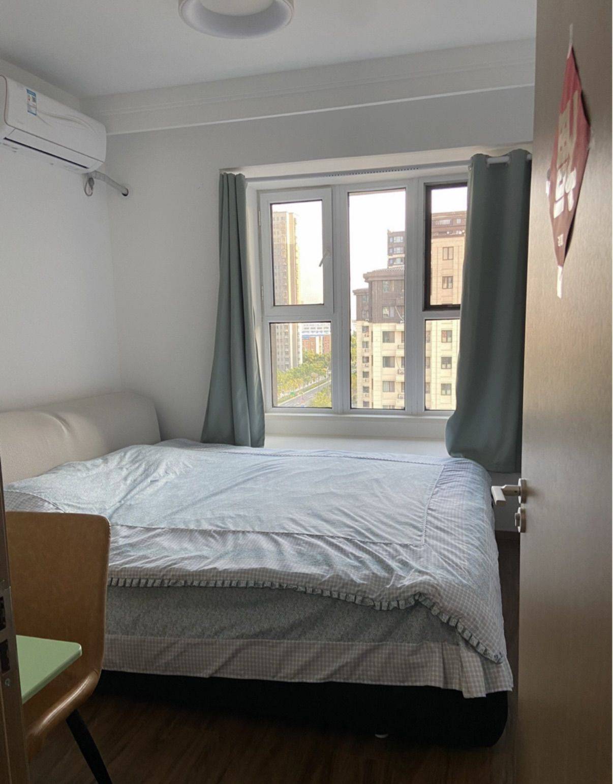 个人一手105平洋房出租(次卧) 1.空调、冰箱、洗衣机、衣柜、wifi、热水器、微波炉都有 2.鞋柜、独立卫生间及洗手池化妆镜(供你单独使用) 3.小区环境优美、较为安静,靠近3号线,出行方便 4.共用厨房、客厅、阳台,保持卫生干净就行 5.纯属为了缓轻还贷压力 6.请各位看清房源位置—属于新站区