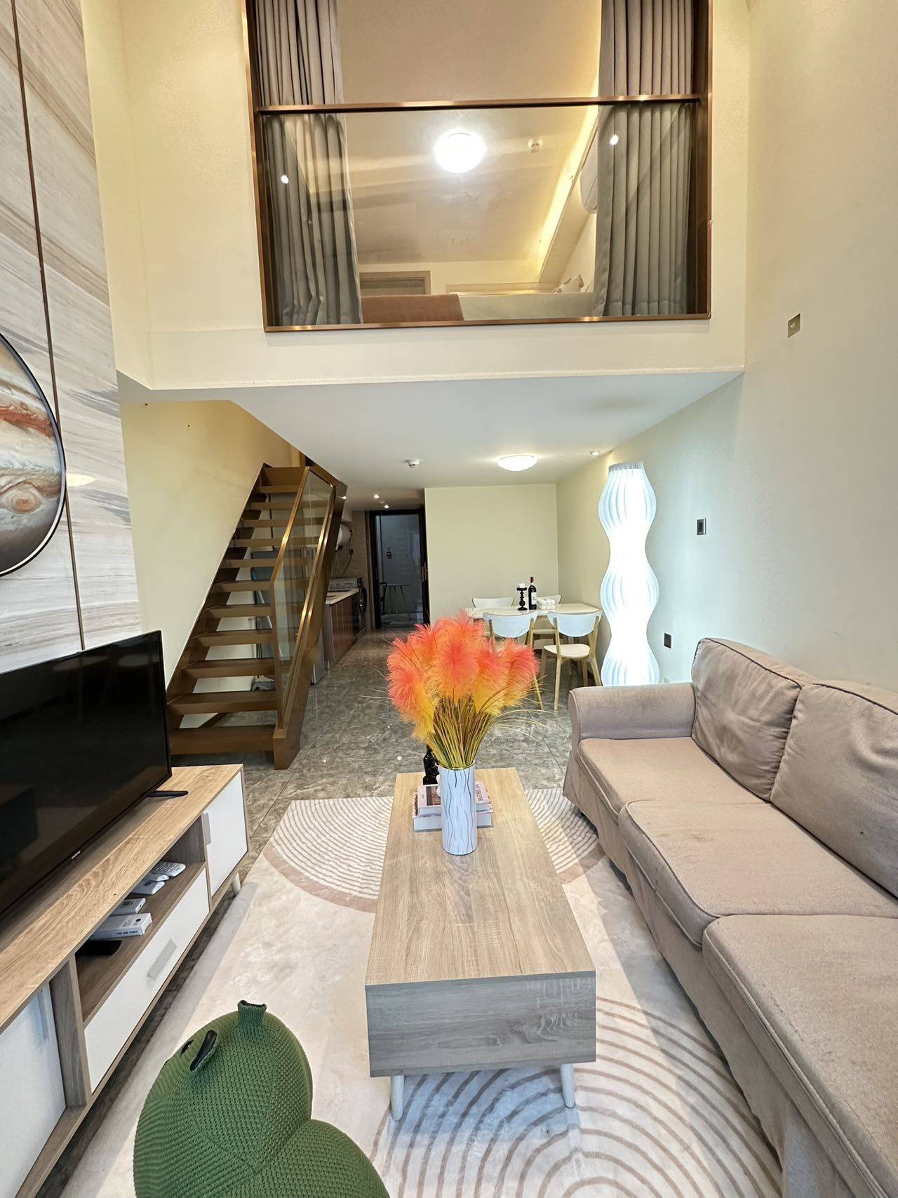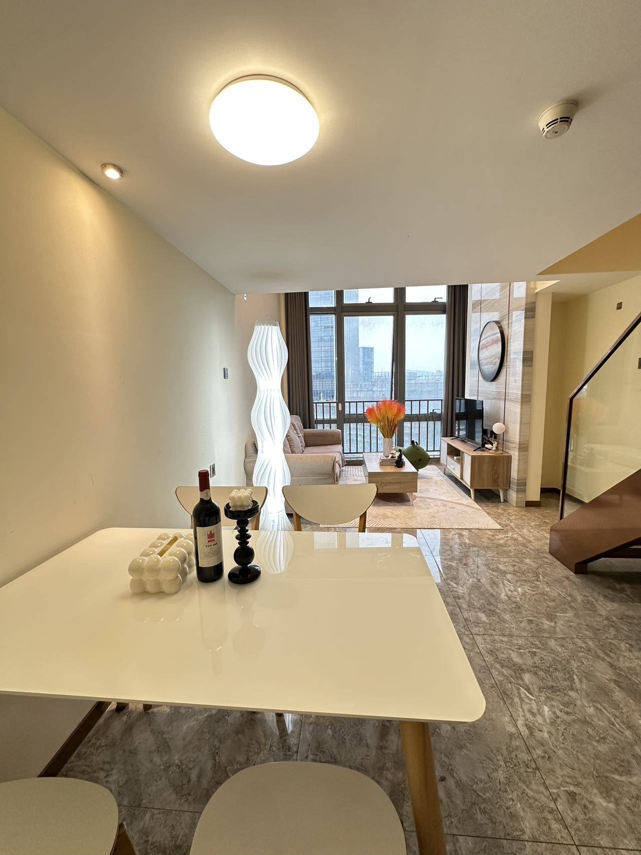 转租佳兆业中央广场温馨复式两房一厅,家私电器齐全,雪象地铁A出口。 采光好,视野开阔,落地窗朝西南,晚上很安静。 生活方便,出门有超市、餐馆和其他生活日用商店。步行可达天安云谷社区和江南时代广场。 交通便利,离地铁口仅400米。甘坑古镇和湿地公园就在下一站。 半年起租,随时可以看房。合同直接跟房屋管理公司签,无中介费。