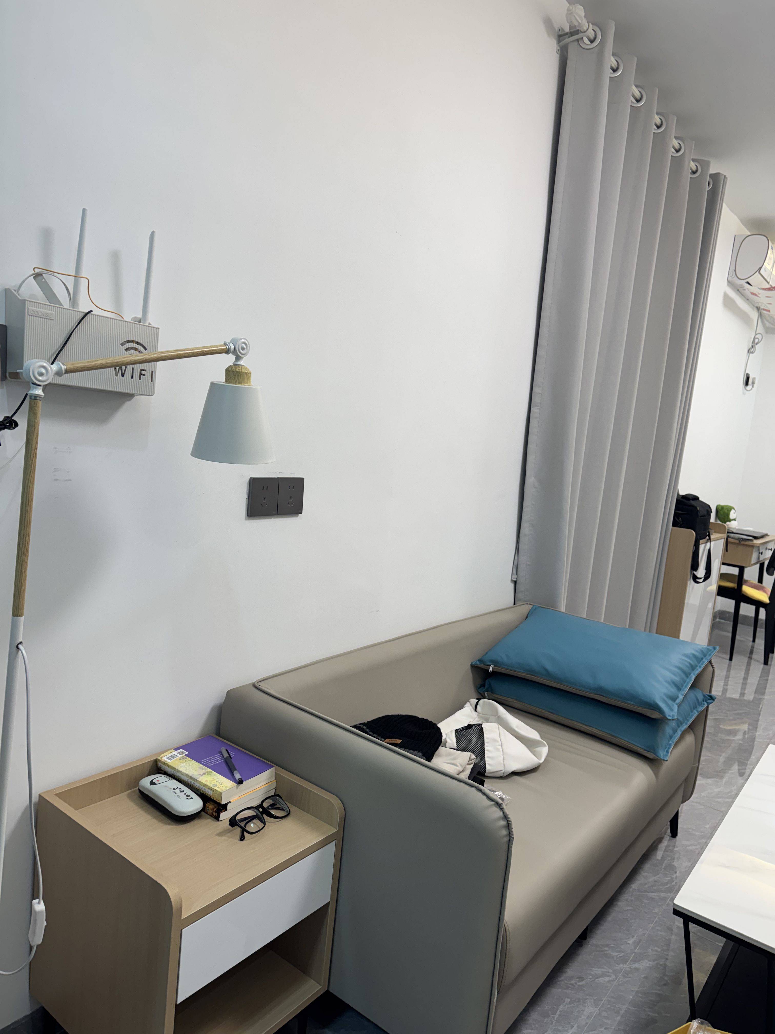 2️⃣押一付一,无物业,房间有免费宽带,水5电1.2,家具齐全可直接入住(个人最喜欢这盏落地灯,很有氛围感~)