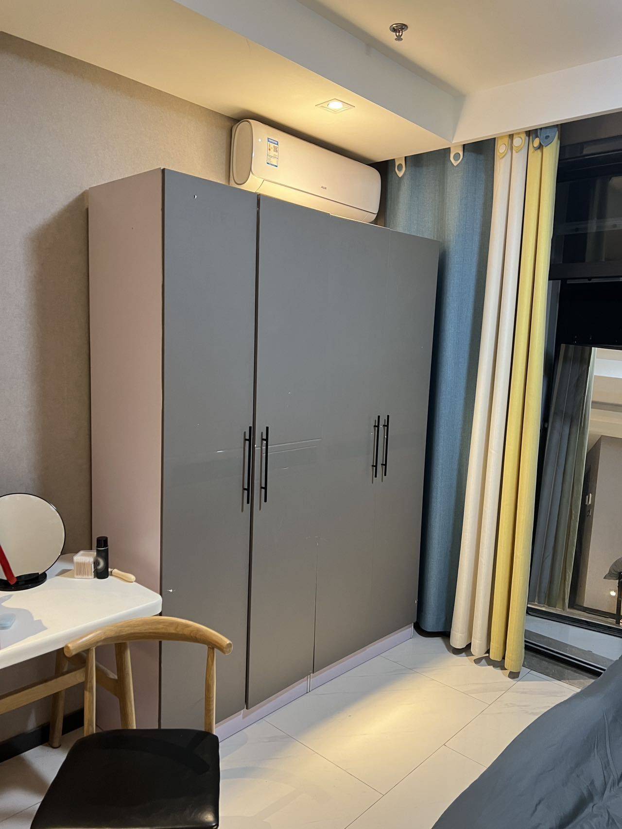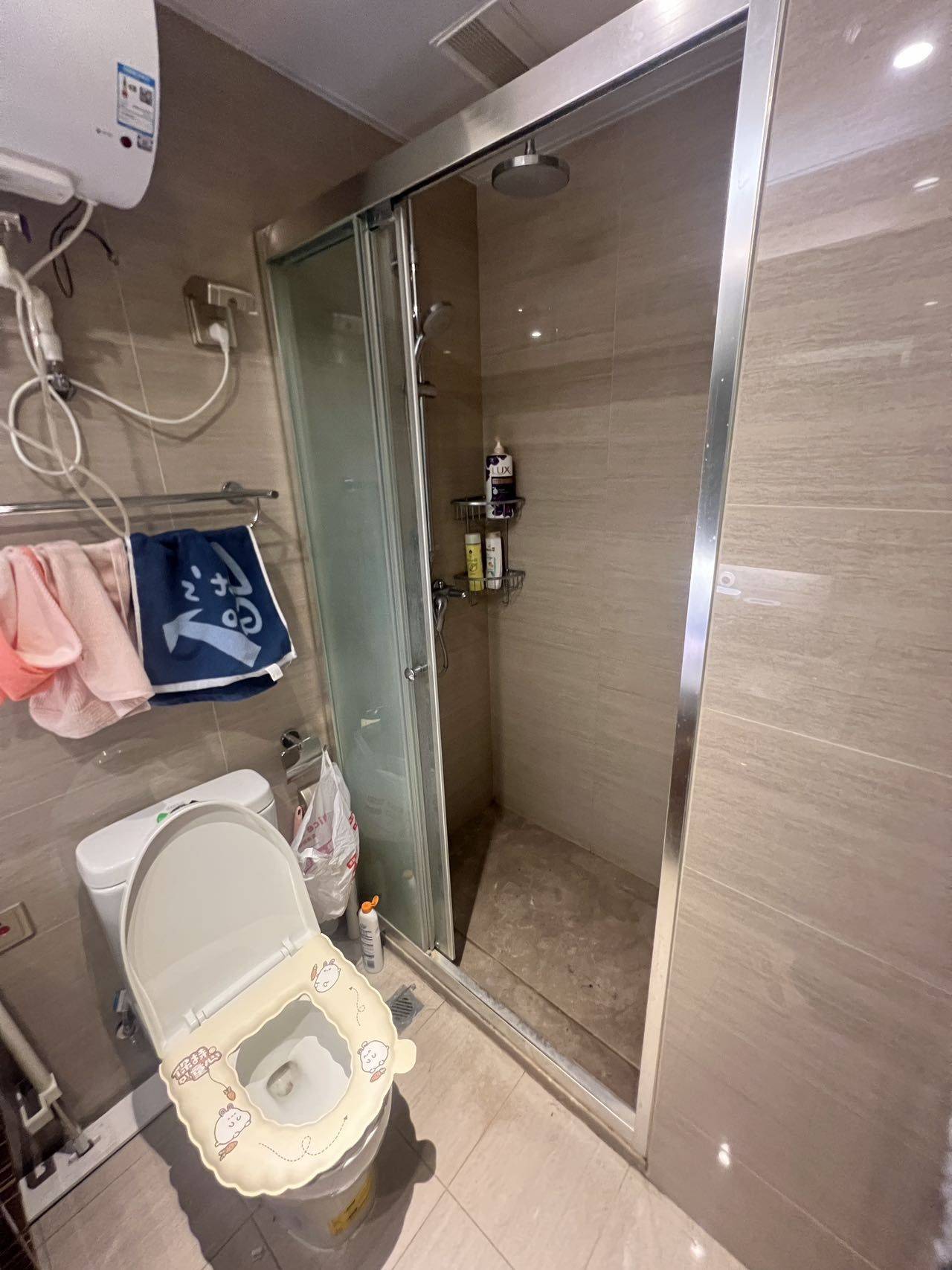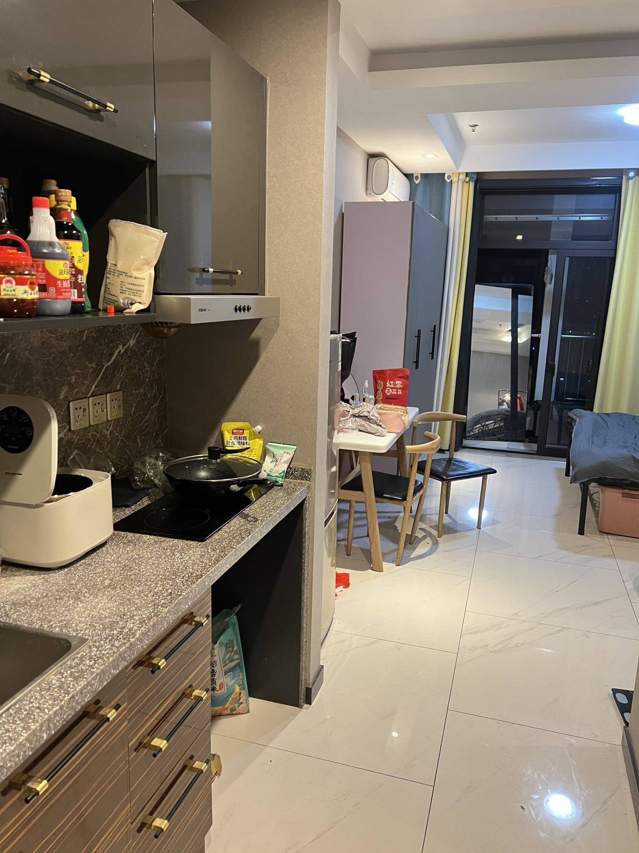 尚宾城一区欢乐颂1室0厅1卫公寓转租 设施有冰箱 洗衣机 热水器 电磁炉油烟机 空调 拎包入住 我们跟房东直租的 一个月1600包物业费 商水民电 水电价格都很透明 有租房兴趣的私 图上是我们自己的东西 稍微比较乱 房子所以设施都挺新的 房子布局也还可以