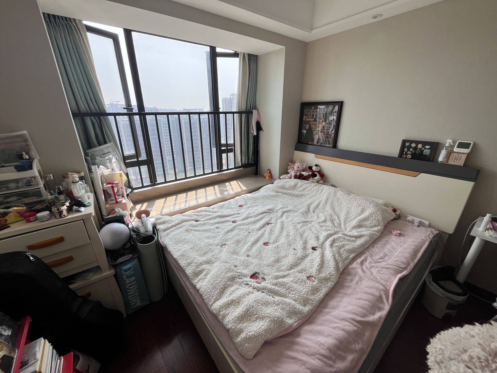 杭州滨康路地铁口 阳光城上府 主卧转租(可短租三个月) 【小区】小区绿化环境很好,安全性高,人车分流,进出门需要刷脸,物业也很负责家里有东西坏了可以及时帮忙修 【楼层】高层,1梯2户 【出行】小区门口就是地铁口,滨康路站,5号线和1号线双地铁线 【户型】3室2厅1卫89平,原户型无隔断,客厅厨房洗手间公用 【出租形式】房东直签,合同期为1年,压1付3,2026年7.18日到期,可短租,也到期可自行选择续住 【出租日期】4.10之后可入住 【租金】2️⃣1️⃣张 可小刀 PS:房子装修较好,其余两个室友均为女生,室友人都非常nice,已住了3年,需要不带异性过夜,另外家里有宠物猫一只