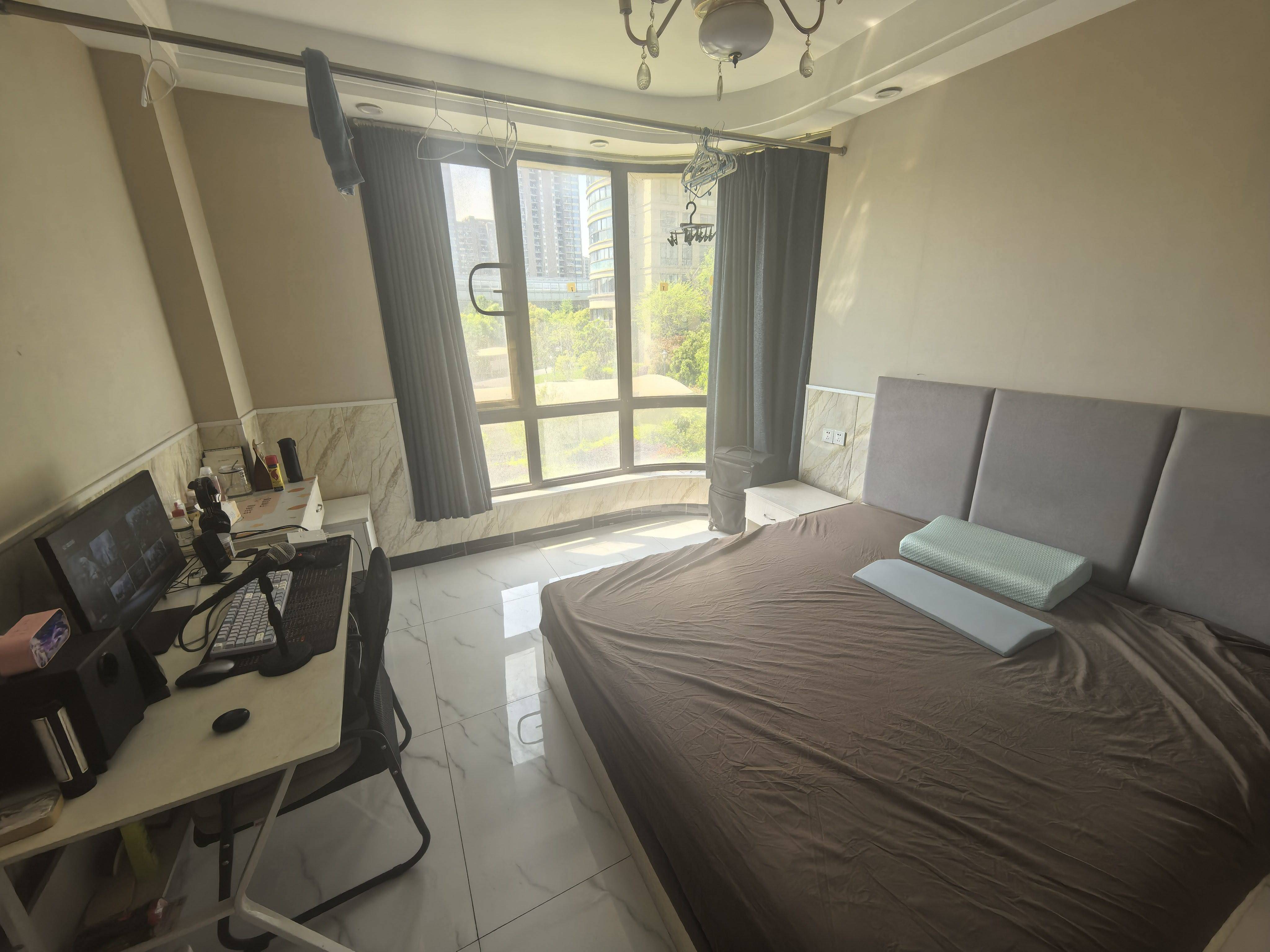 房间是属于主卧,30平出头,独立卫生间,1650一个月(为什么是这个价呢= =,因为当时讲价的时候我从一百一百的,到五十,一点一点跟房东砍下来的),民用水电。押一付一,二楼,实体墙,隔音好,晚上很安静,睡得香。太阳光可以晒进来,而且不会直射,位置刚刚好。 1.近地铁 十分钟左右可以走到地铁站(湘湖站),因为是发车站,所以出发的时候不用担心没位子坐。然后地铁站挨着就是商业街,吃的喝的大超市零食店都有,建议扫个共享电动车来回,小区门口后门都有还的地方。 2.房东自己的房子,然后他本人也住在这边不远,很好说话,任何问题随时联系,基本上,有什么问题当天说,当天或者第二天就处理了,包括但不限于缺椅子或者什么东西坏了之类的。(房东动手能力很强!基本上都是他亲自带个工具箱过来三两下就整好了) 3.门口有放鞋的地儿,专门的一个鞋架,挨着门口,鞋子多的不怕没地方放了 4.垃圾桶我自己来的时候买的,带盖的,一个做饭用,一个厕所用,还有一个不带盖的大点,日常用,然后门口有公用的扫把拖把,平时打扫都可以拿来用。 5.冰箱空调是3级耗能,洗衣机是1级(我在杭州看过最良心的了,一般1级都被说是做慈善来的0.0),热水器2级 6.然后俩桌子,椅子是我自己组装的,千兆宽带,很快,冲浪不卡。 7.有油烟机,有架子可以放菜刀挂锅铲放筷子,也是我自己装的,不用的话可拆卸 8.窗帘遮光性不错,不拉开通宵熬夜睡觉都香滴很。记得一点缝不要留,不然那一束阳光亮的能给人送走。 9.有意向的可以联系我来看看房,合适的话,到时候我这边东西都是一趟清空搬走的,因为是搬回家离得比较远,所以没有提前搬空,还请见谅。 感兴趣的私